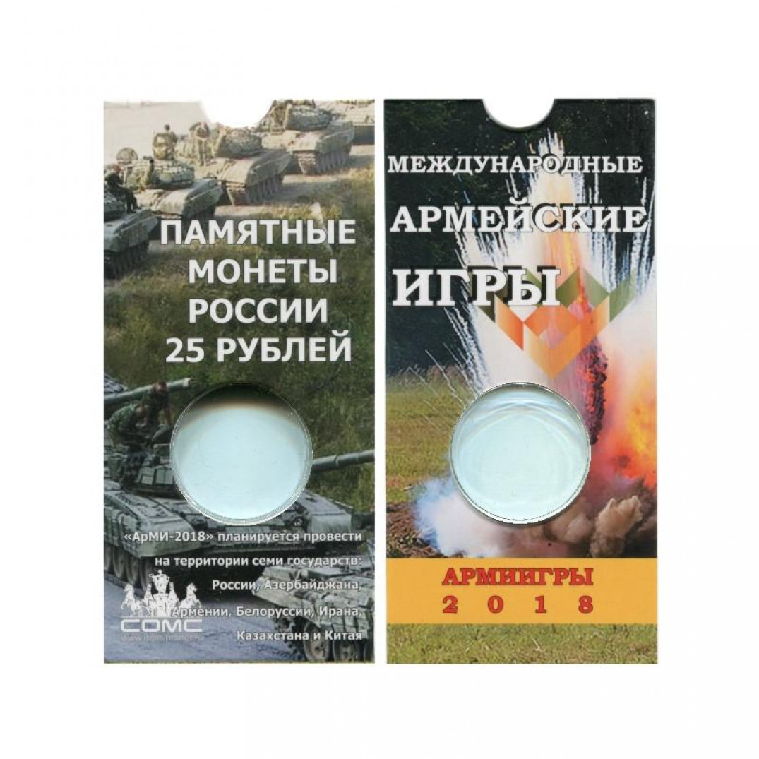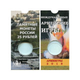 - Описание: Блистер под монету 25 рублей 2018 года. Армейские Международные игры. Блистер для хранения монет выполнен из ламинированного картона с тематической иллюстрацией, ячейка из прозрачной пленки ПВХ позволяет рассмотреть обе стороны. Диаметр ячейки соответствует диаметру монеты.