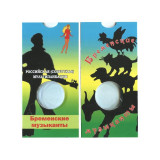 - Описание: Блистер под монету России 25 рублей 2019 года, "Бременские музыканты" серии "Российская (советская) мультипликация". Блистер для хранения монет выполнен из ламинированного картона с тематической иллюстрацией, ячейка из прозрачной пленки ПВХ позволяет рассмотреть обе стороны.
