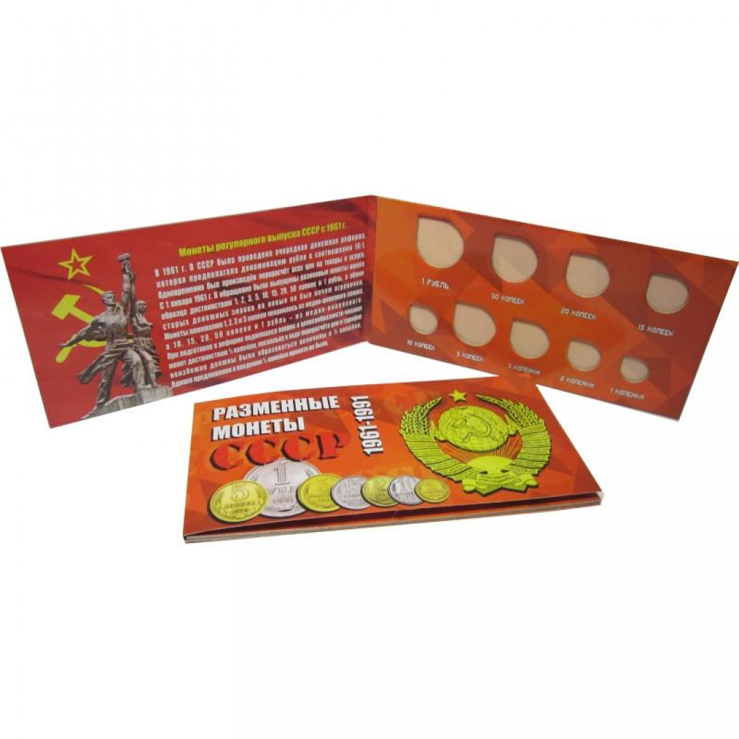 - Описание: Буклет под разменные монеты СССР 1961-1991 гг.,на 9 монет регулярного выпуска. Буклет для монет выполнен из ламинированного картона предназначен для небольших серий одной тематики. Размер ячейки соответствует размеру монеты, а каплевидная форма позволяет легко извлекать монеты из гнезда. Наши буклеты разных серий созданы в единой стилистике, что поможет разместить вашу коллекцию компактно.