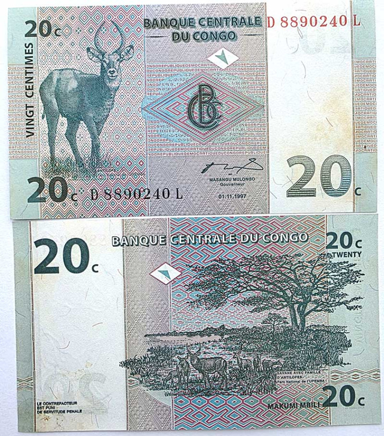 Банкнота 10 сантим - Конго, 1997 год, UNC