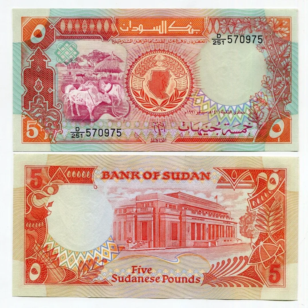 Банкнота 5 фунтов - Судан, 1991 год, UNC