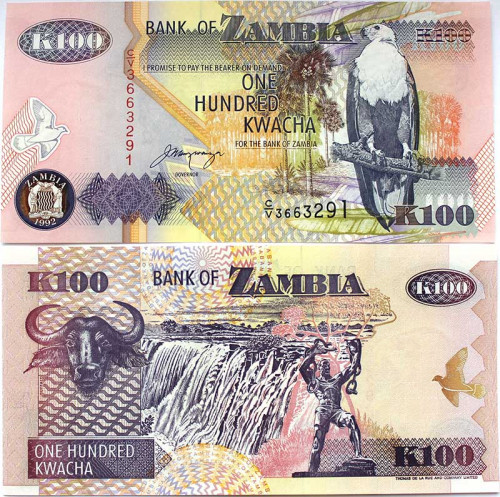 Банкнота 20 квача 1991 года - Замбия, UNC