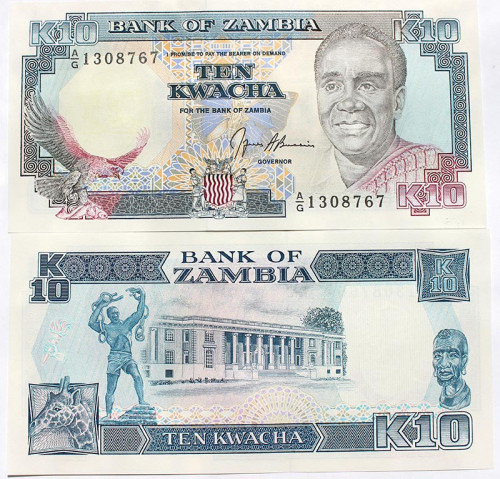 Банкнота 10 квача 1989 года - Замбия, UNC