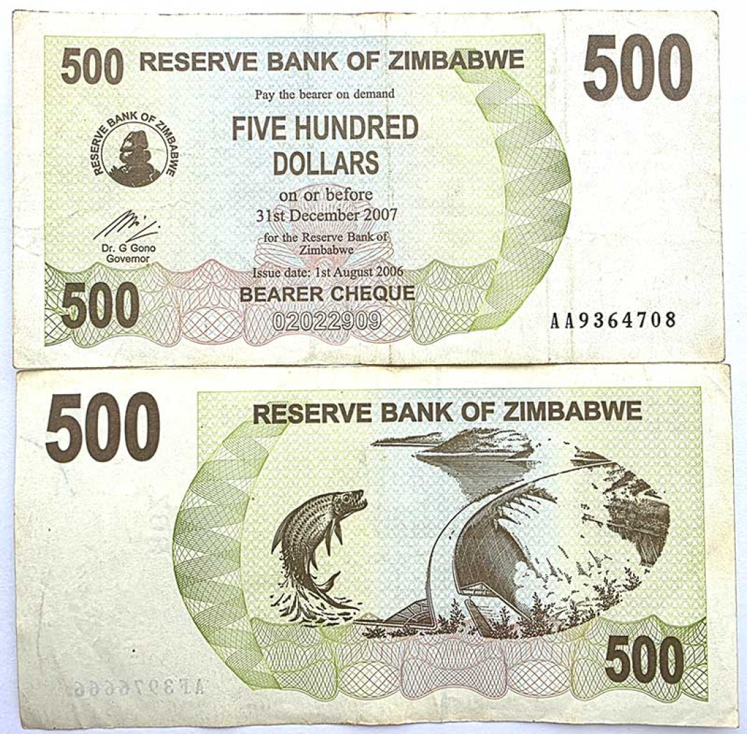 Банкнота 500 долларов - Зимбабве, 2007 год