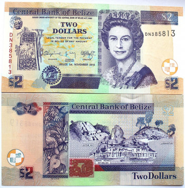 Банкнота 2 доллара - Белиз, 2014 года