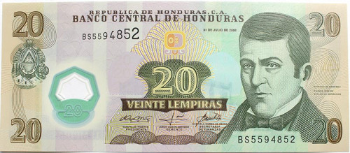 Полимерная банкнота 20 лемпир - Гондурас, 2008 год, UNC