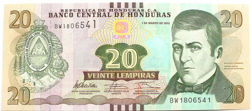 Банкнота 20 лемпир - Гондурас, 2012 год, UNC