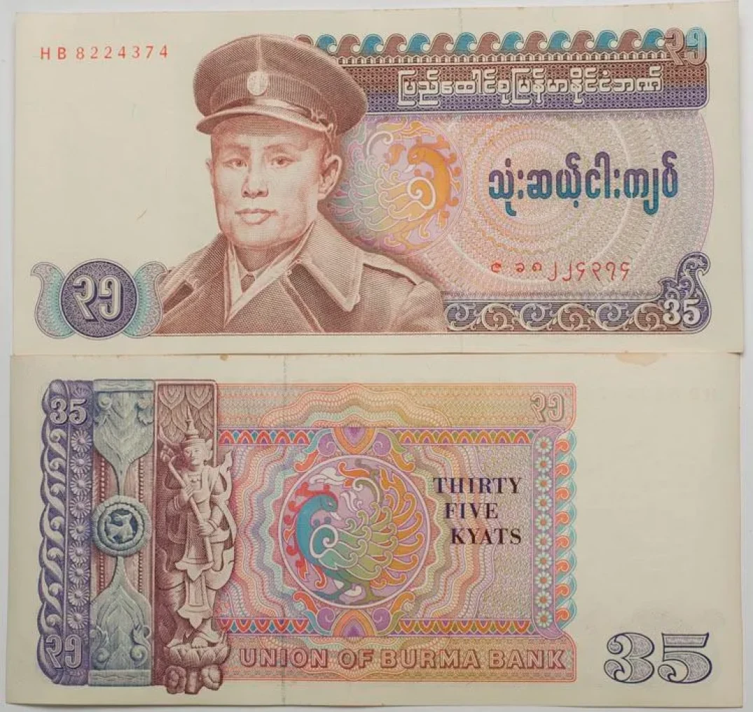 Банкнота 35 кьят - Бирма, 1986 год, UNC