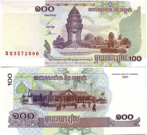 Банкнота 100 риелей - Камбоджа, 2001 год