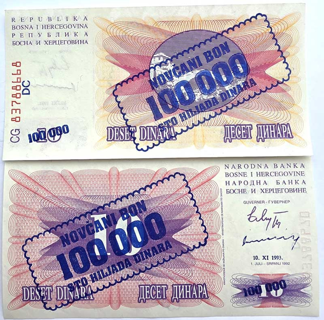 Банкнота 100000 динар - Босния и Герцеговина, 1993 год, UNC