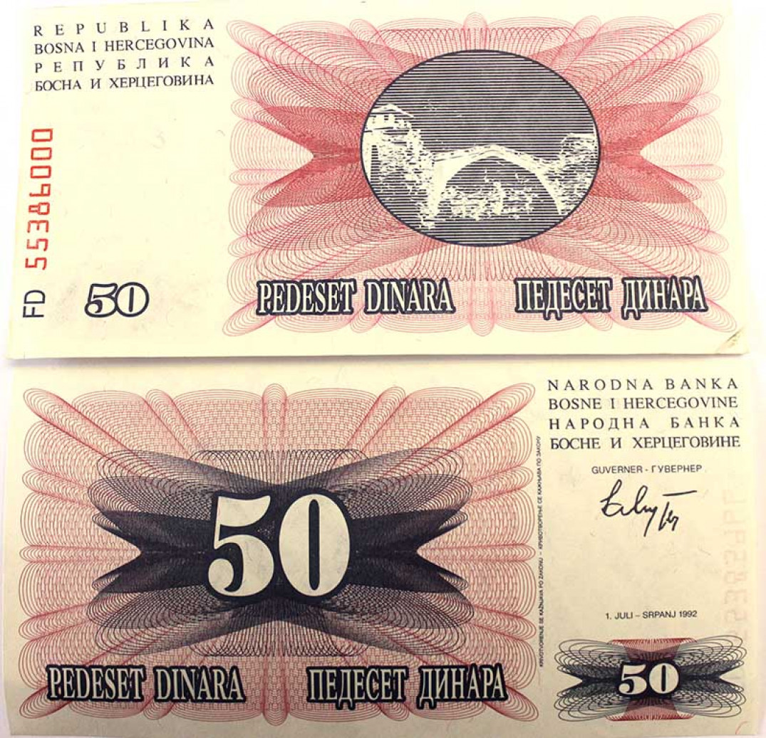 Банкнота - 50 динар, Босния и Герцеговина, 1992 год, UNC
