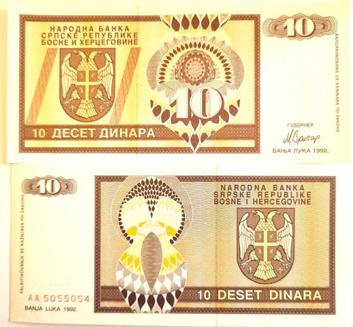 Банкнота 10 динар - Босния и Герцеговина, 1992 год, UNC