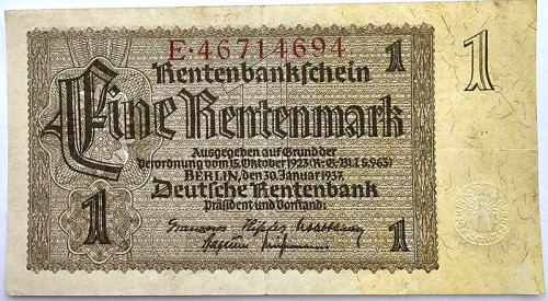 Банкнота 1 рентенмарка - Германия, 1923 год