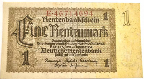 Банкнота 1 рентенмарка - Германия, 1923 год