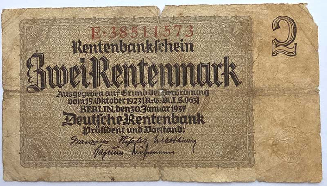 Банкнота 2 рентенмарки - Германия, 1937 год