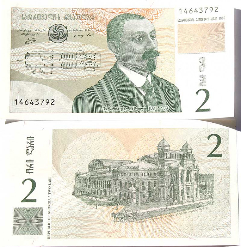Банкнота 2 лари - Грузия, 1995 год, UNC