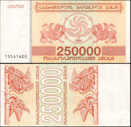 Банкнота 250000 купонов (лари) 1994 года, UNC