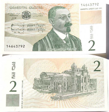 Банкнота 2 лари - Грузия, 1995 год, UNC