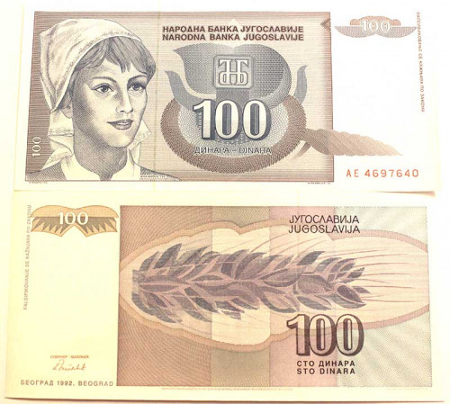 Банкнота 100 динар - Югославия, 1992 год, UNC