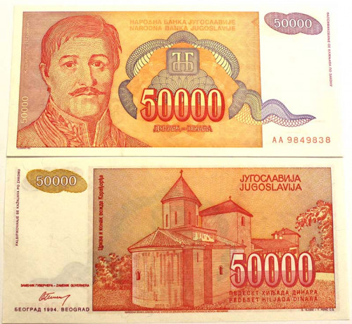 Банкнота 50000 динар - Югославия, 1994 год, UNC