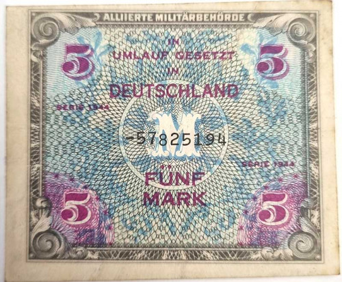 Банкнота 5 марок - оккупация союзными войсками, Германия, 1944 год