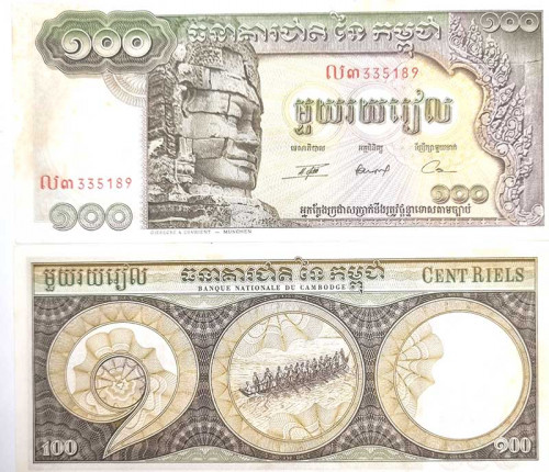 Банкнота - 100 риелей, Камбоджа, 1957-75 гг., UNC