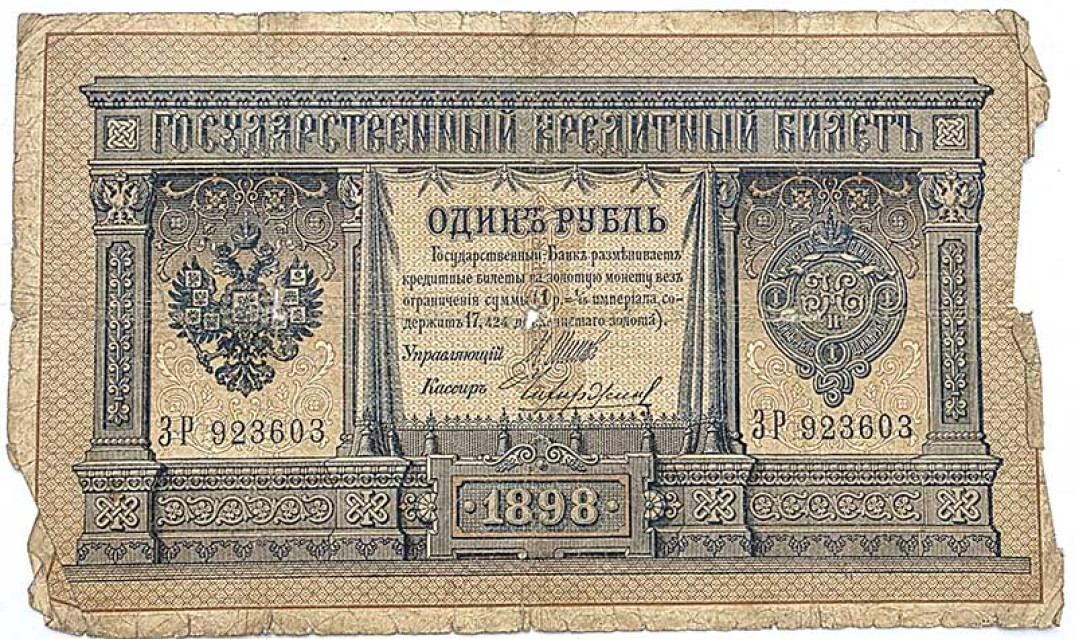 Банкнота 1 рубль 1898 год, длинный номер