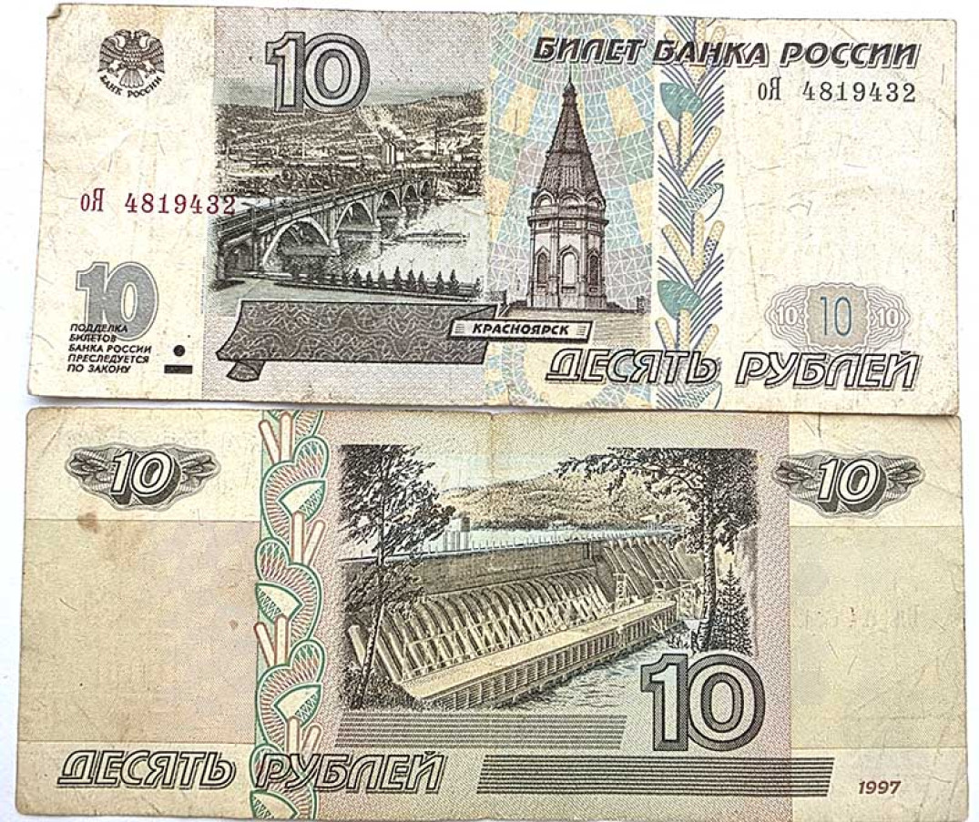 Банкнота 10 рублей 1997 год, модификация 2001 год
