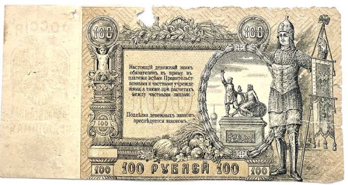 Банкнота 100 рублей - Росто-на-Дону, 1919 год