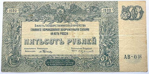 Банкнота 500 рублей 1920 год, Вооруженные силы Юга России