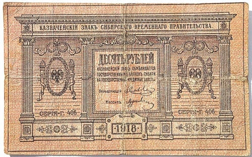 Банкнота 10 рублей 1918 год, Сибирское Временное правительство, Колчак