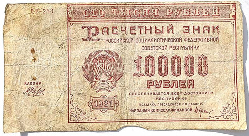 Банкнота 100000 рублей 1921 год