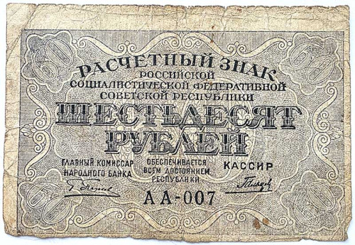 Банкнота 60 рублей 1919 год