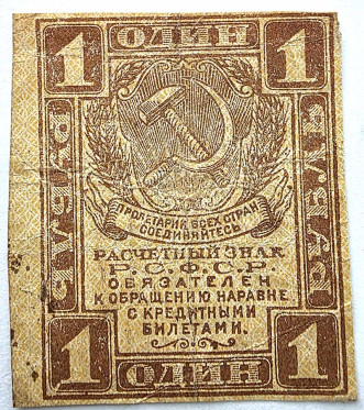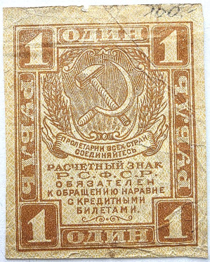 Банкнота 1 рубль 1919 год