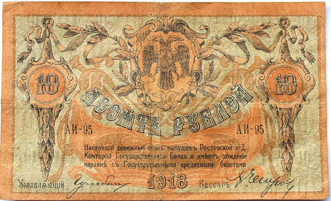 Банкнота 10 рублей 1918 год, Ростов-на-Дону