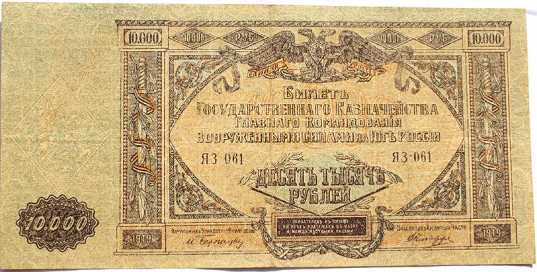 Банкнота 10000 рублей 1919 год, Вооружённые силы Юга