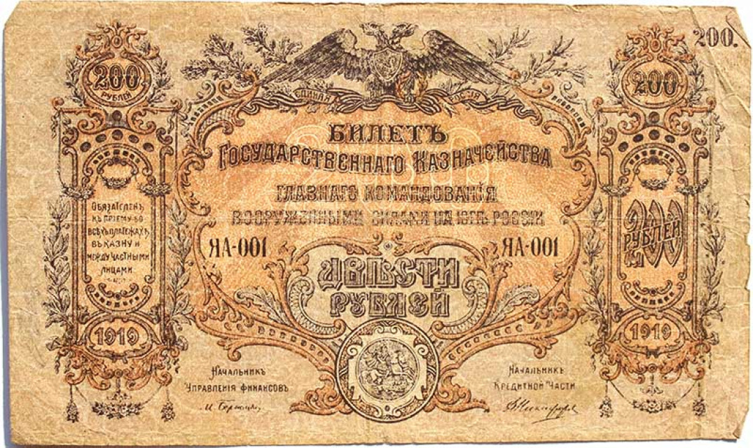 Банкнота 200 рублей 1919 год, Вооруженные Силы Юга России