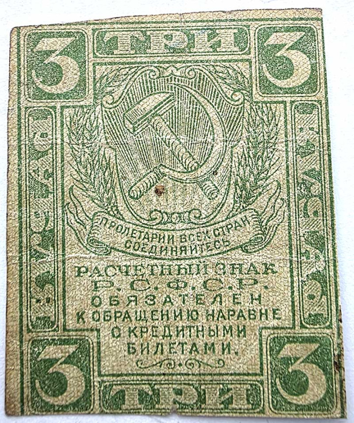 Банкнота 3 рубля 1919 год