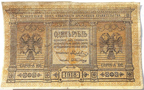 Банкнота 1 рубль 1918 год, Колчак