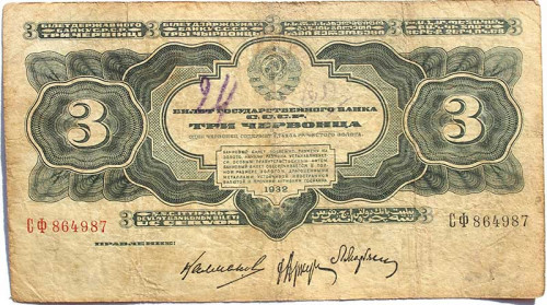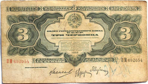 Банкнота 3 червонца 1932 год