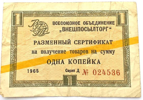 Банкнота 1 копейка - Внешпосылторг, 1965 год