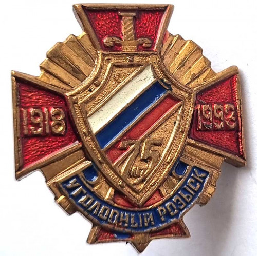 Значок - УГОЛОВНЫЙ РОЗЫСК РФ - 75 лет. 1918-1993 гг. ТМ, ВИНТ