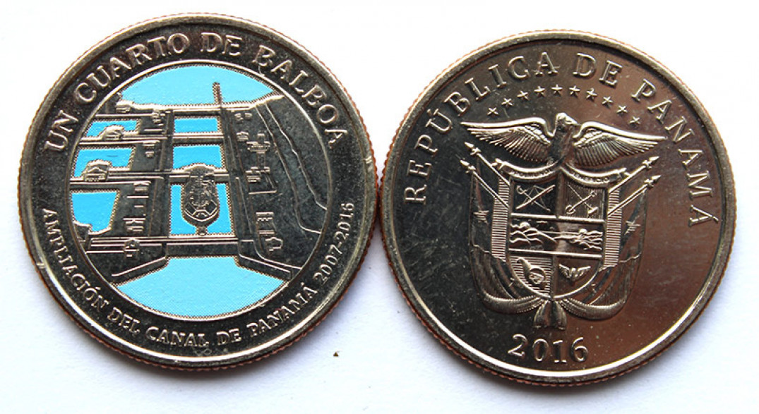 1/4 бальбоа - 100 лет строительству Панамского канала - рабочие, Панама, 2016 год