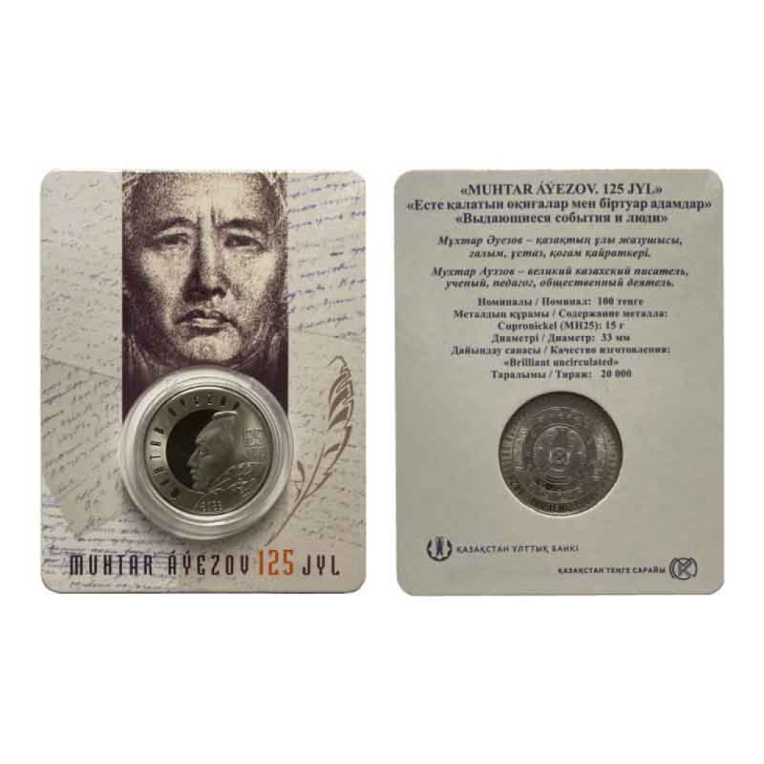 100 тенге - 125 лет со дня рождения Мухтара Ауэзова, Казахстан, 2022 год, в блистере
