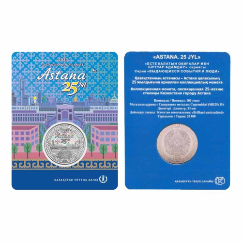 100 тенге - 25 лет Астане, Казахстан, 2023 год, в блистере