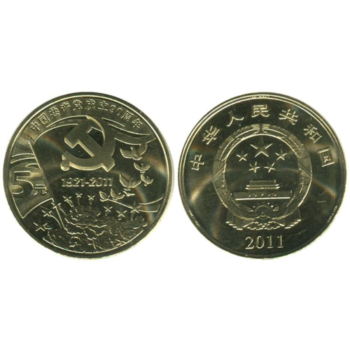 5 юаней - 90 лет Коммунистической партии Китая, Китай, 2011 год