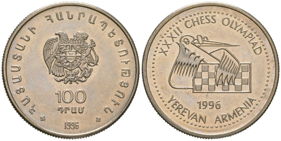 100 драмов - XXXII шахматная Олимпиада в Ереване, Армения, 1996 год