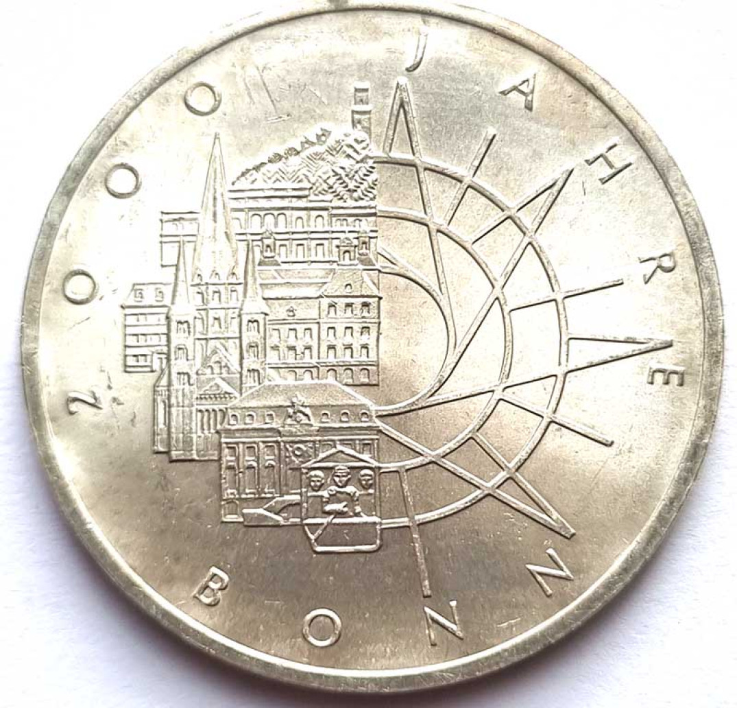 10 марок - 2000 лет городу Бонн, Германия, 1989 год, серебро