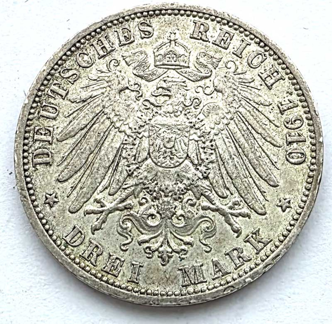 3 марки - Баден Фридрих 2, 1910 год, Германия, серебро