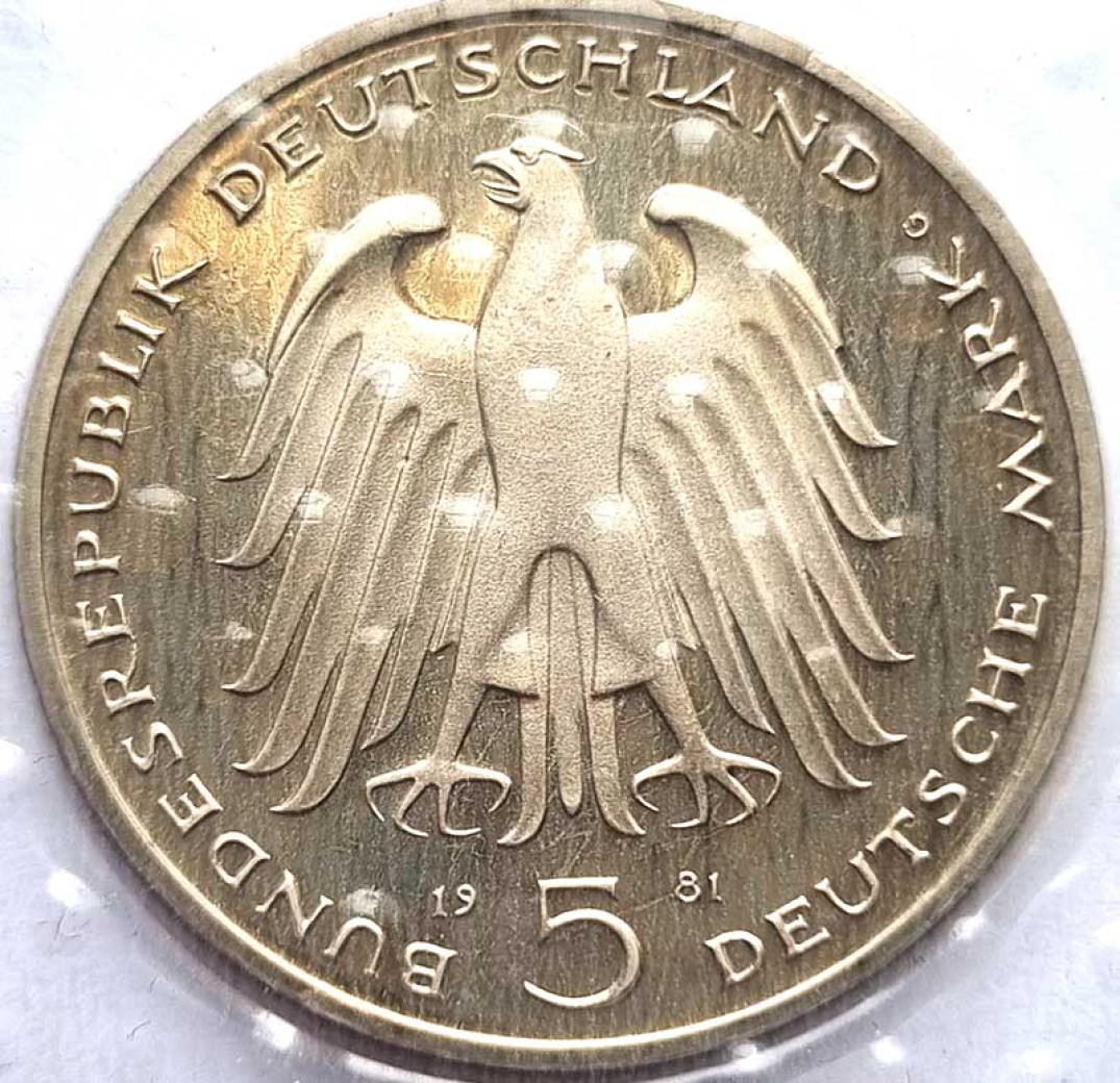 5 марок - 150 лет со дня смерти Карла фом Штейна, Германия, 1981 год, в запайке